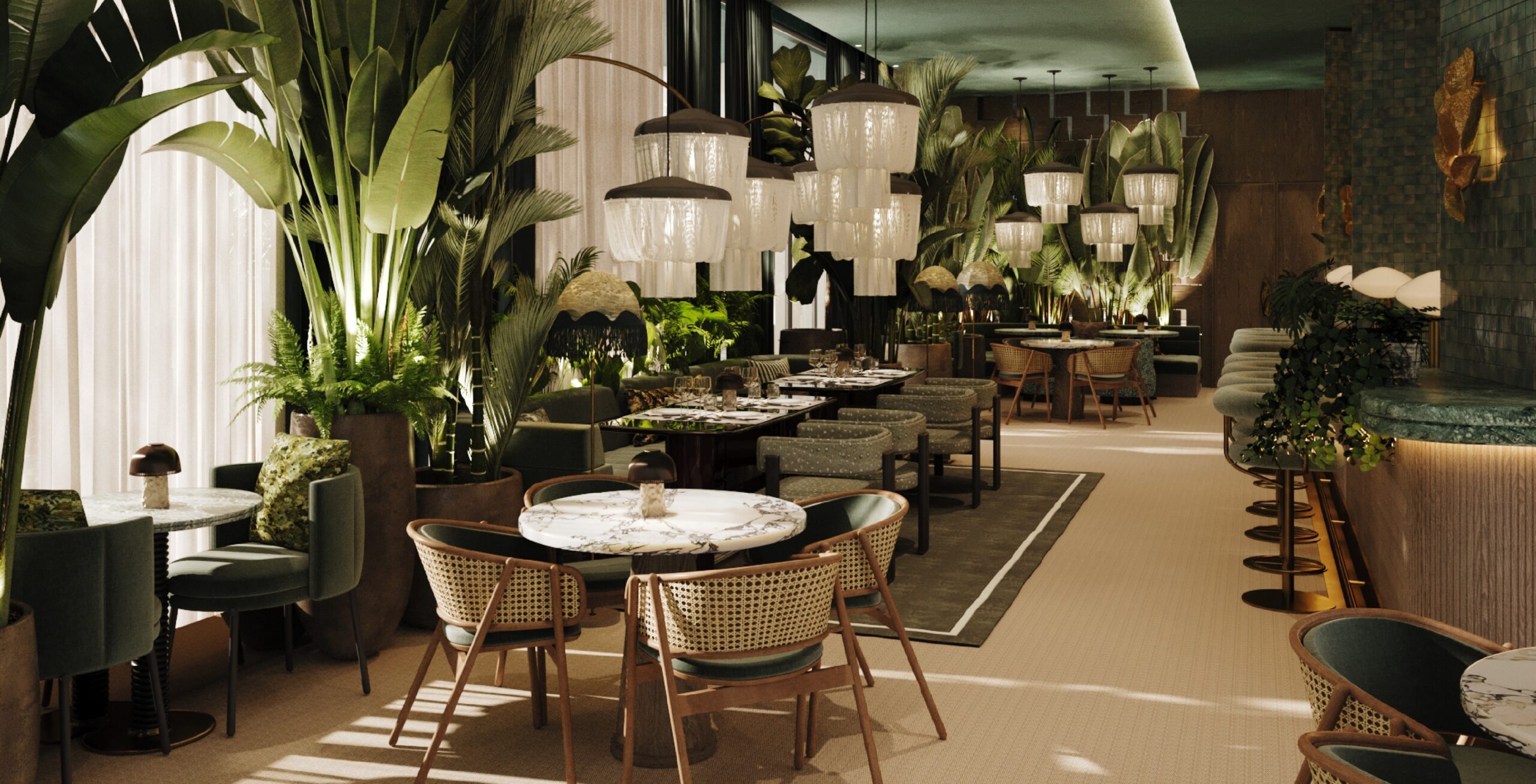 Yes, I know what you mean, dear, I agree, the atmosphere is really artistic, here, it’s got that lively vibe… You know, last time I had lunch here I was talking with the maître d’, and he actually confirmed that this was the point all along, when they were designing Lalane. To really feel artistic, not by simply filling it with works of art, but to build this ambience, to manage to evoke this sense of warming creativity, while keeping it elegant. I think it also perfectly complements The Fiction, right? Do you remember what Velma was telling us, the other day? That every room features its unique work of art?
